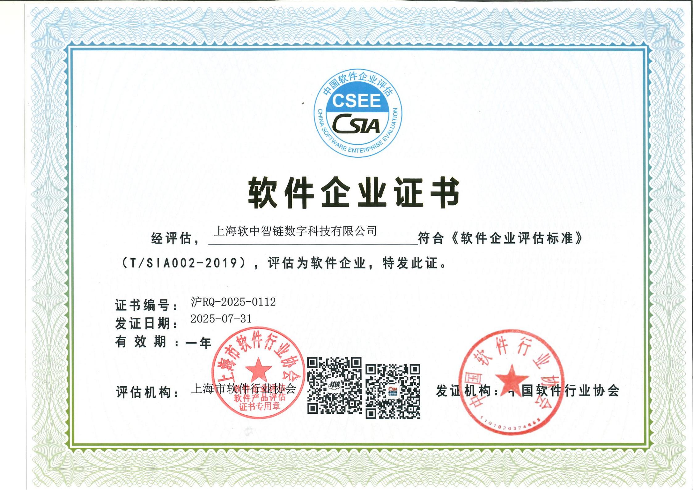 喜报 | 上海软中智链数字科技有限公司荣获国家级软件企业认证